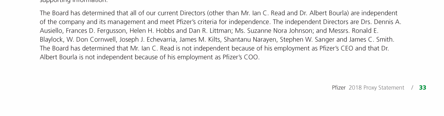 A Message from Pfizer's Lead Independent Director