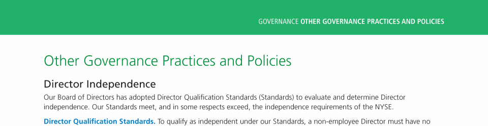 Other Governance Practices and Policies