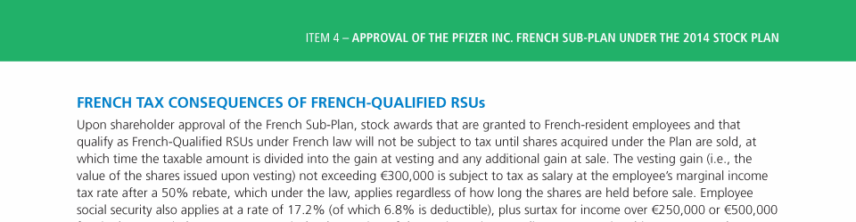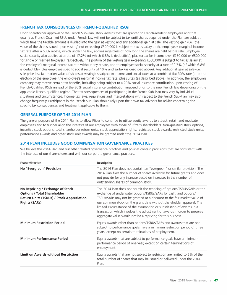 Item 4 - Approval of the Pfizer Inc. French Sub-Plan under the 2014 Stock Plan