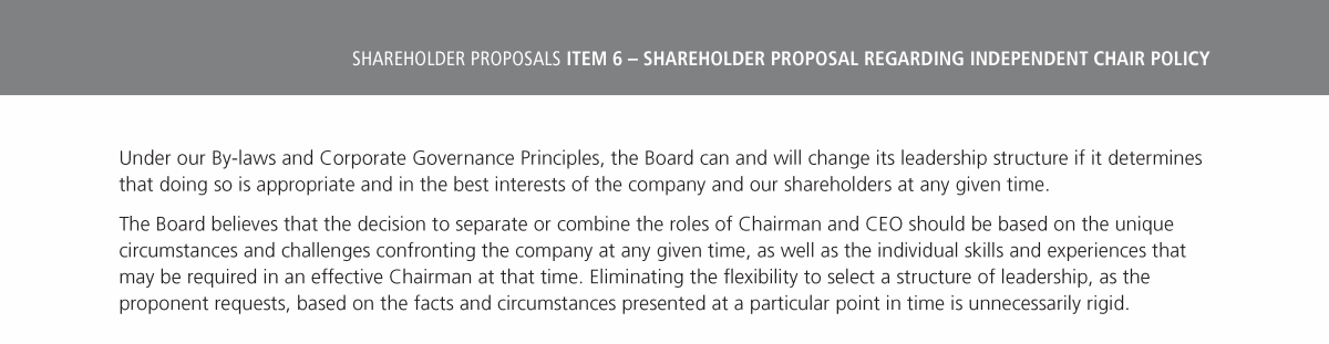 Item 6 - Independent Chair Policy