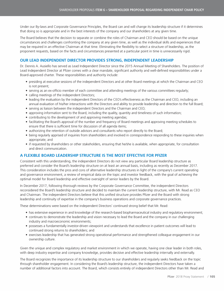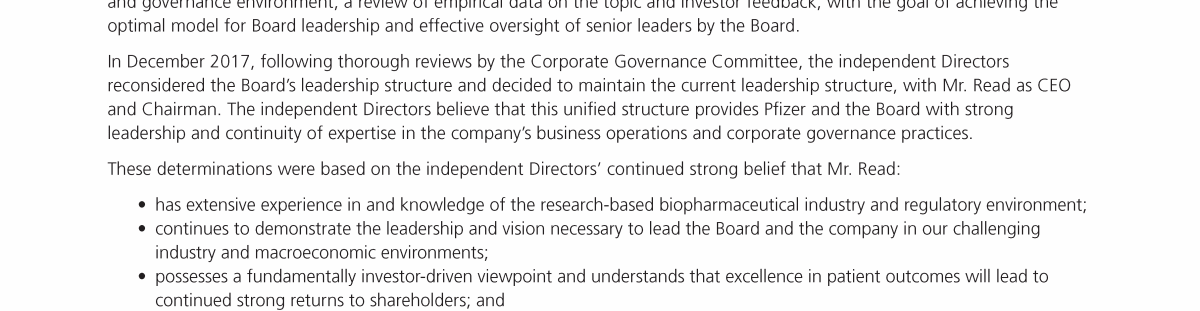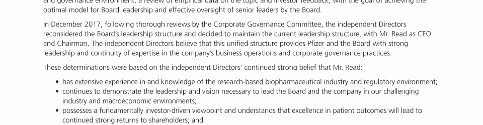 A Message from Pfizer's Lead Independent Director