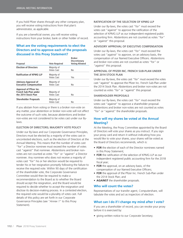 Item 4 - Approval of the Pfizer Inc. French Sub-Plan under the 2014 Stock Plan