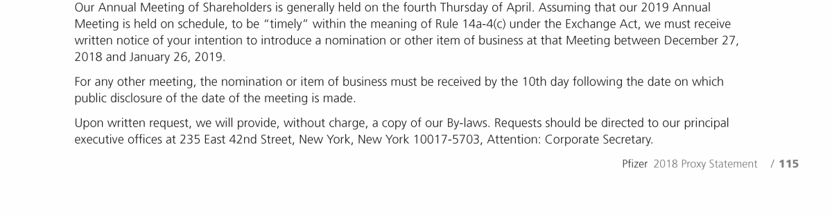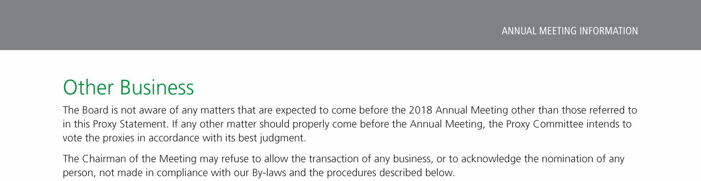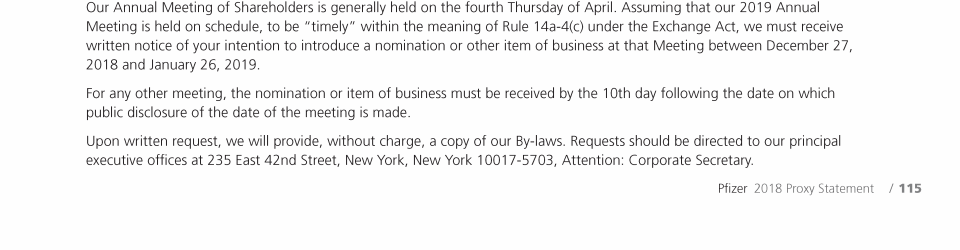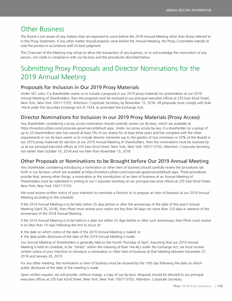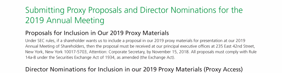 Submitting Proxy Proposals and Director Nominations for the 2019 Annual Meeting