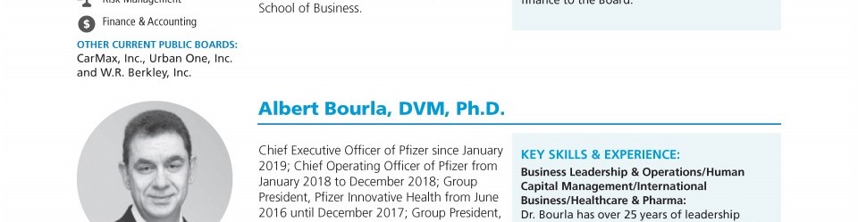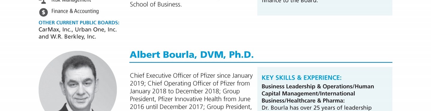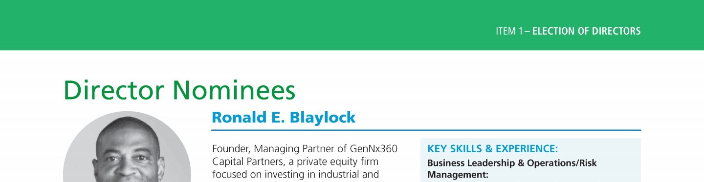 Review our Director nominees’ biographies, key skills and experience, committee memberships and more in our interactive