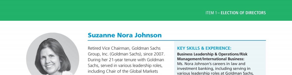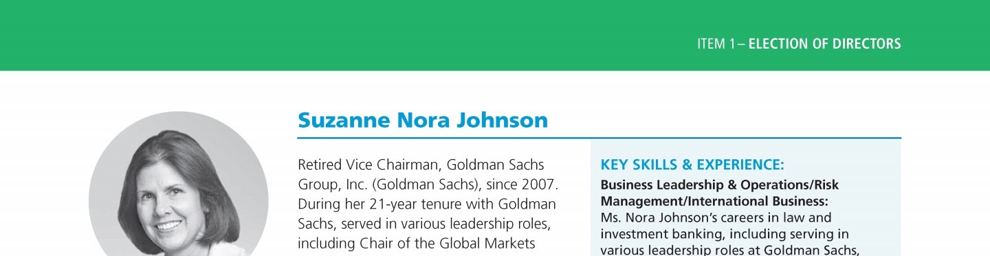 Review our Director nominees’ biographies, key skills and experience, committee memberships and more in our interactive