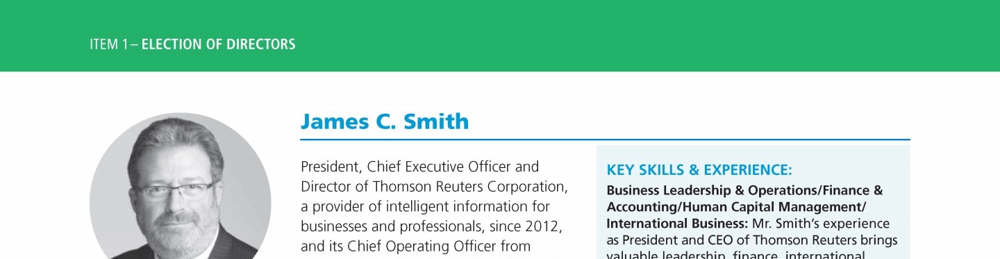 Review our Director nominees’ biographies, key skills and experience, committee memberships and more in our interactive