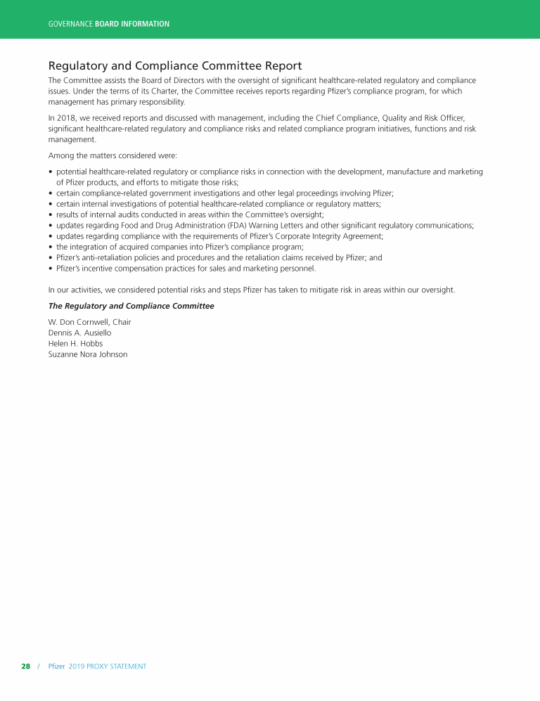 Item 4 - Approval of the Pfizer Inc. 2019 Stock Plan