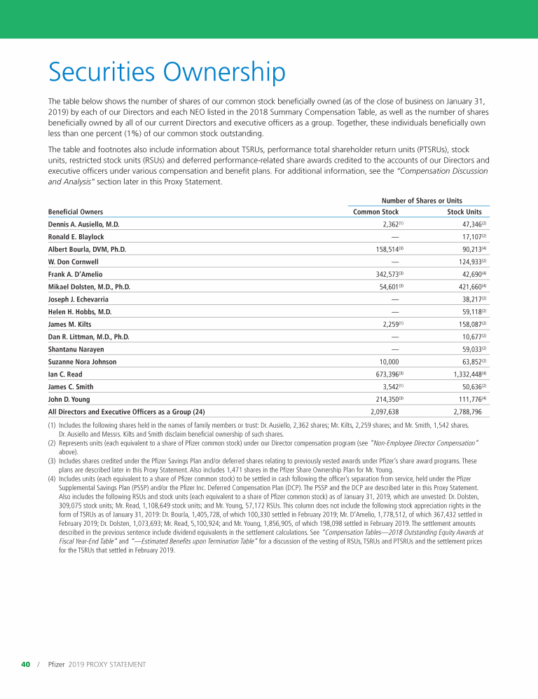 Item 4 - Approval of the Pfizer Inc. 2019 Stock Plan