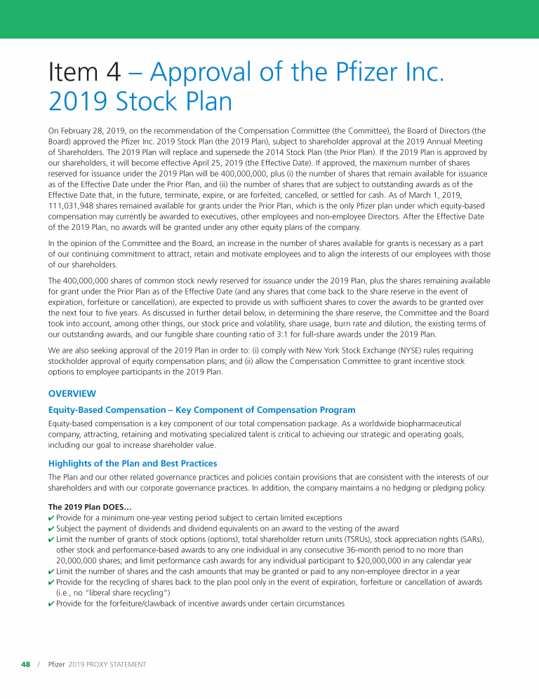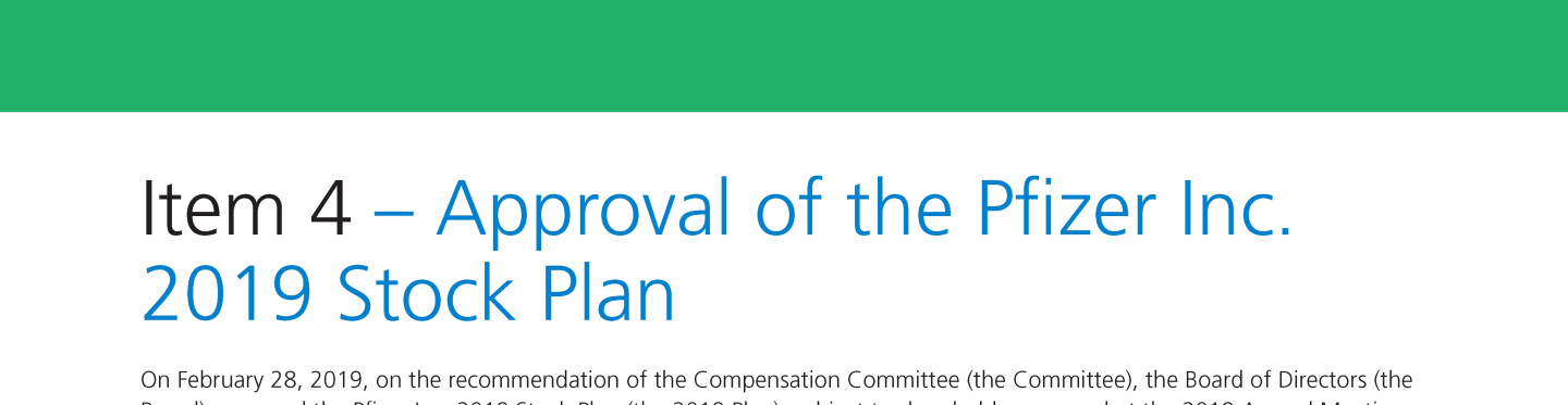 Item 4 - Approval of the Pfizer Inc. 2019 Stock Plan