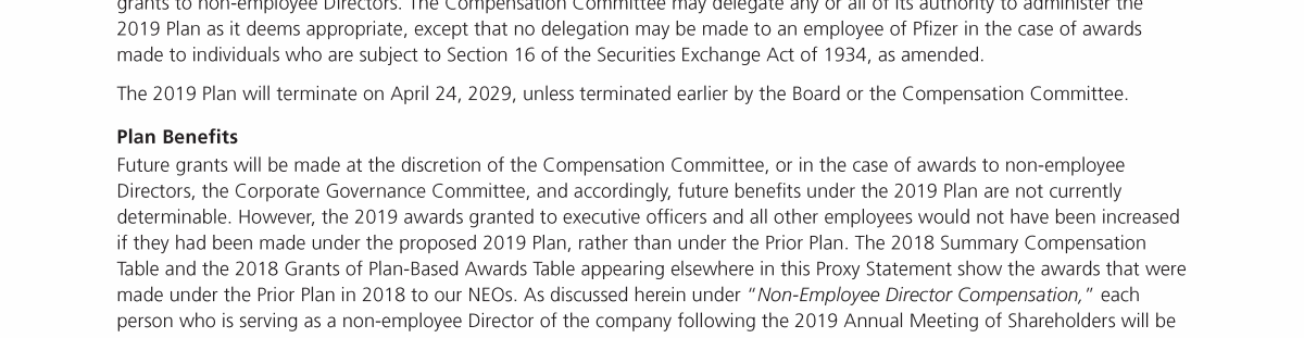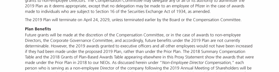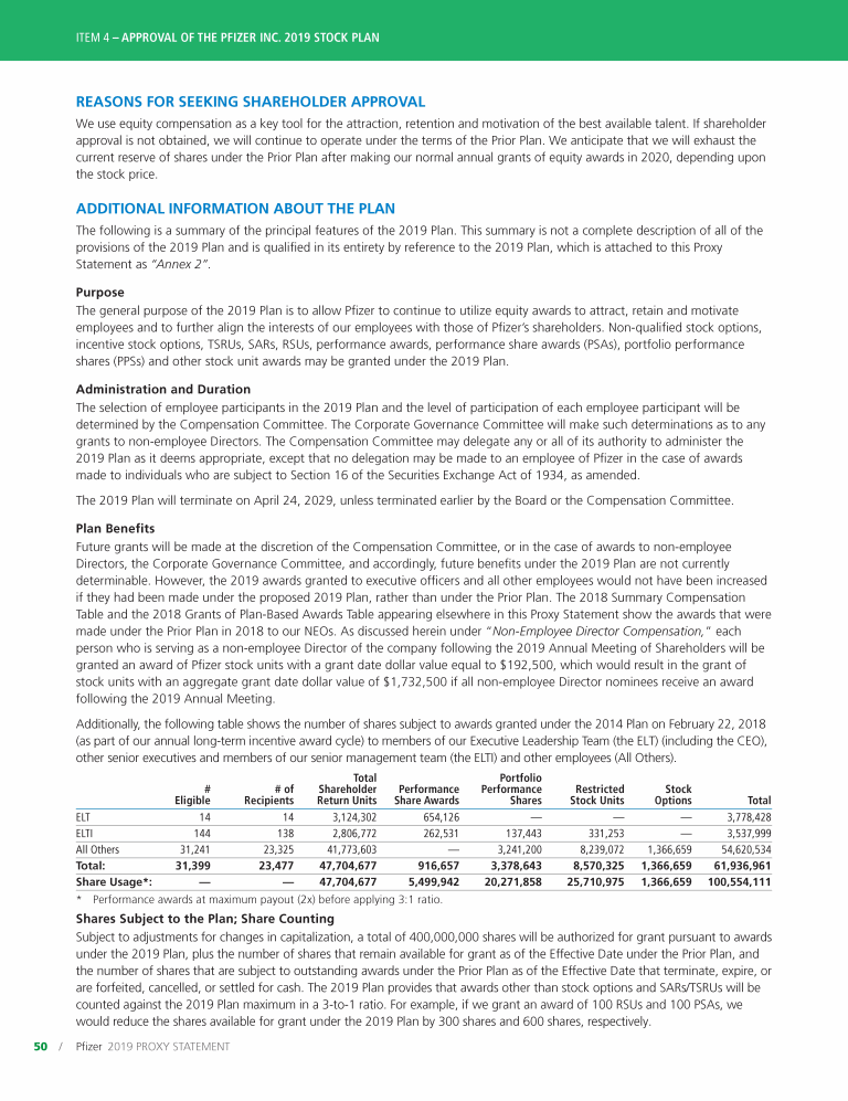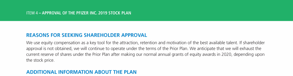 Item 4 - Approval of the Pfizer Inc. 2019 Stock Plan