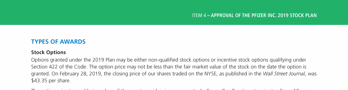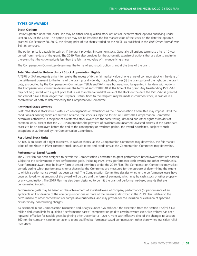 Item 4 - Approval of the Pfizer Inc. 2019 Stock Plan