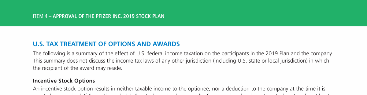 Item 4 - Approval of the Pfizer Inc. 2019 Stock Plan