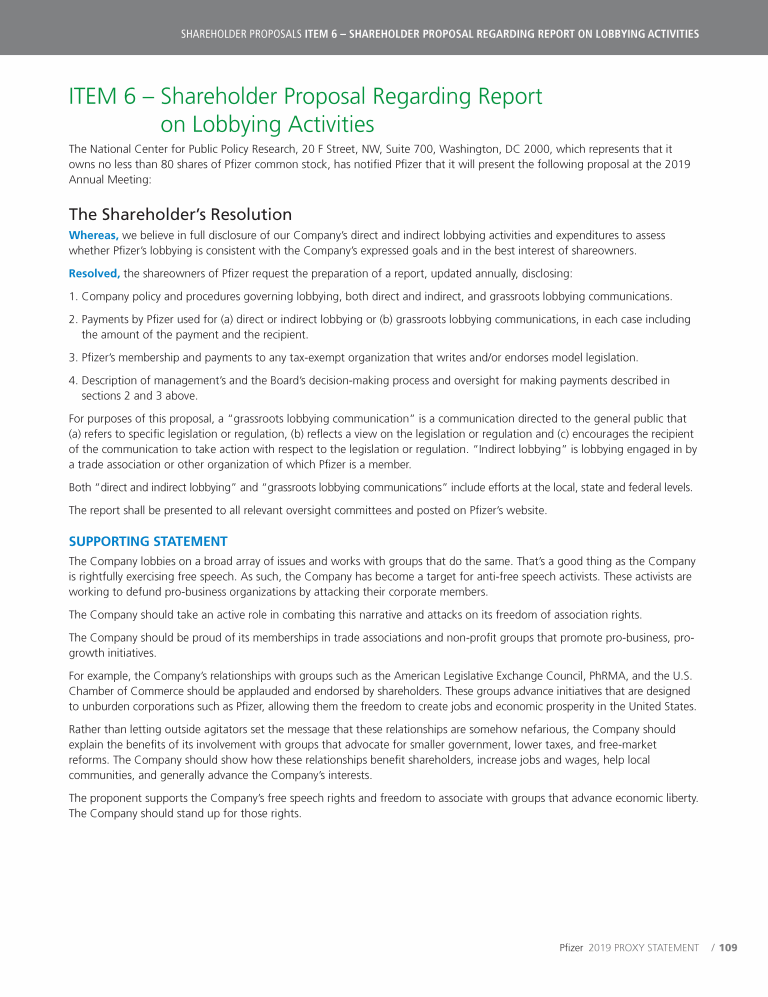 Item 4 - Approval of the Pfizer Inc. 2019 Stock Plan