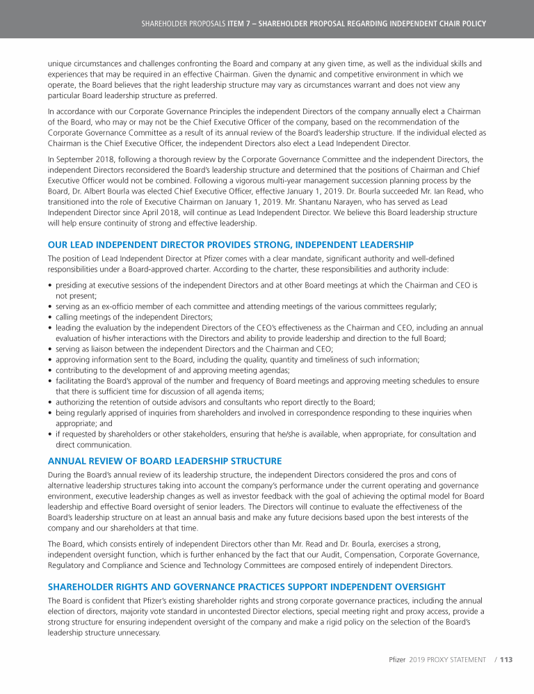 Item 4 - Approval of the Pfizer Inc. 2019 Stock Plan