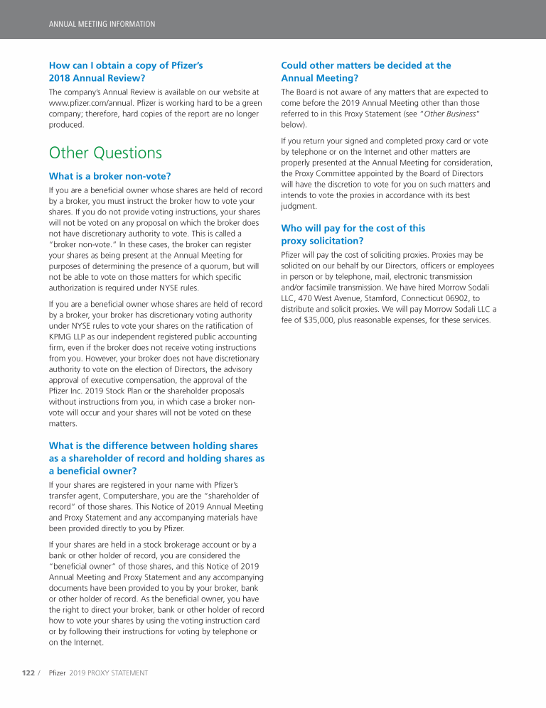 Item 4 - Approval of the Pfizer Inc. 2019 Stock Plan