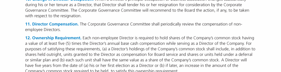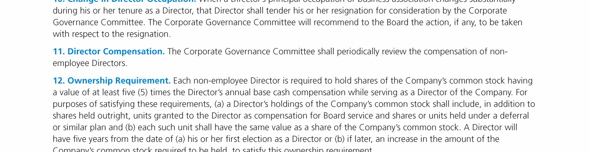 Other Governance Practices and Policies