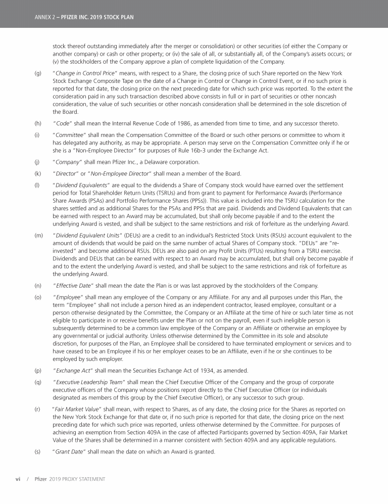 Annex 2 - Pfizer Inc. 2019 Stock Plan