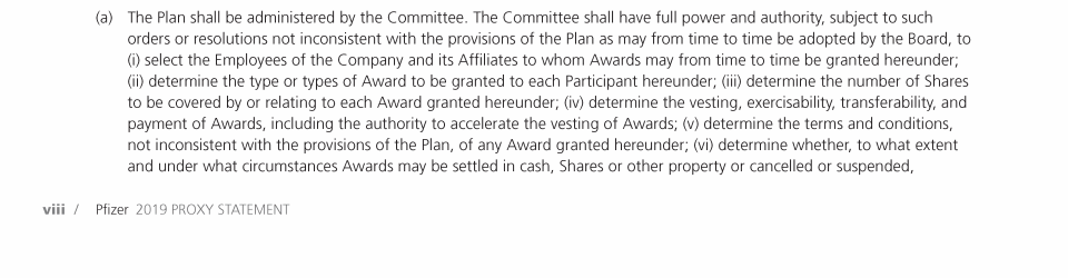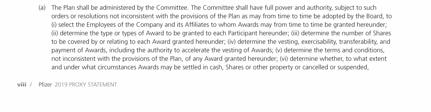 Item 4 - Approval of the Pfizer Inc. 2019 Stock Plan